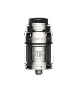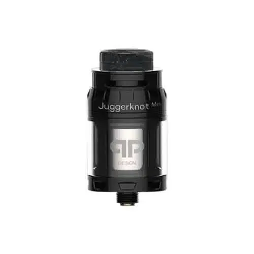 JUGGERKNOT MINI RTA By qp Design, An atomizer 24mm in diameter and has a capacity that can pass from 2ml to 4.5ml depending on the reservoir. The Juggerknot Mini has the particularity to have aeration from the top of the tank to avoid leaking of e liquids. The filling is also effectuated from the top.